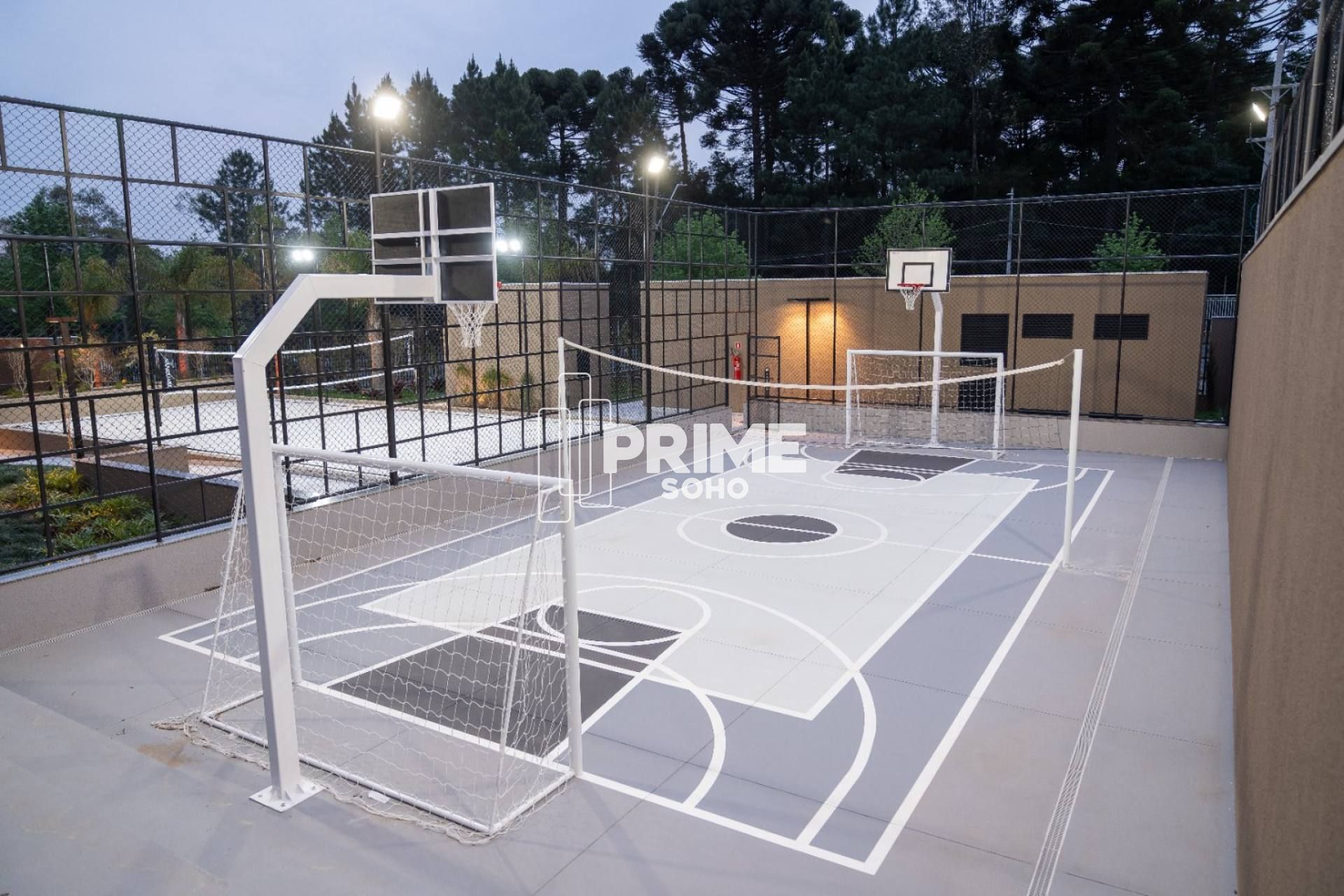 Quadra poliesportiva e Beach Tennis.