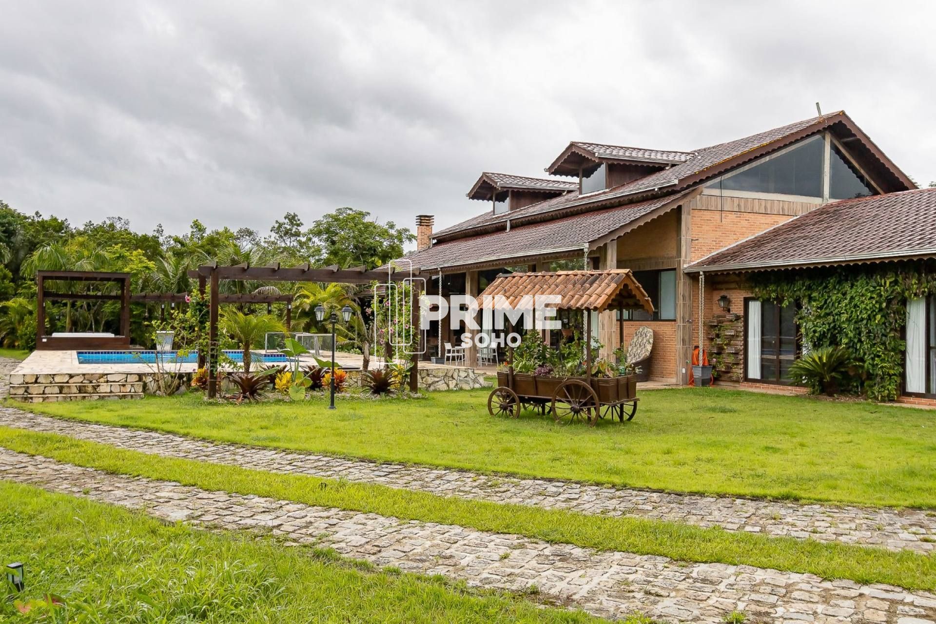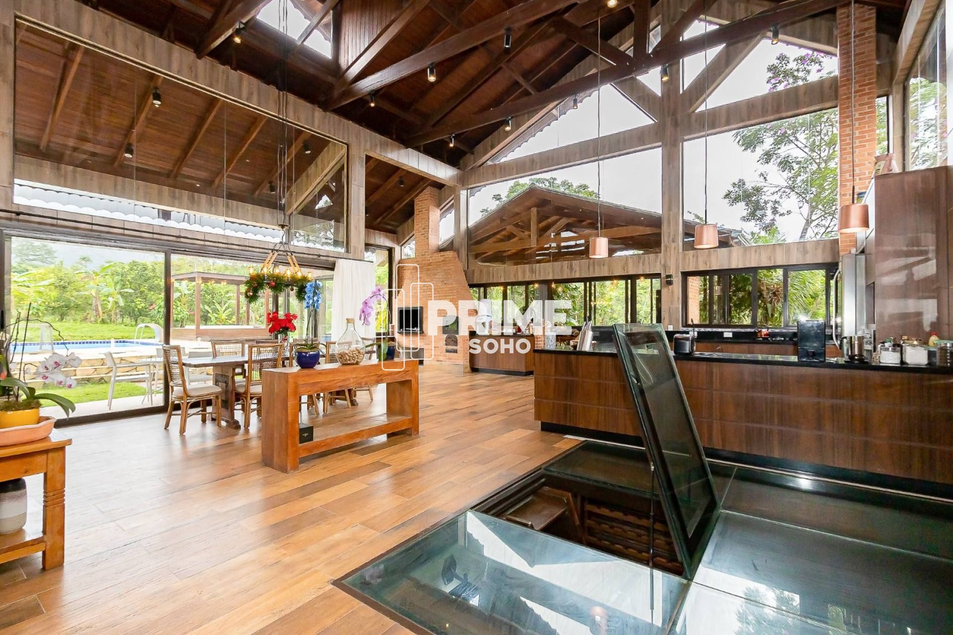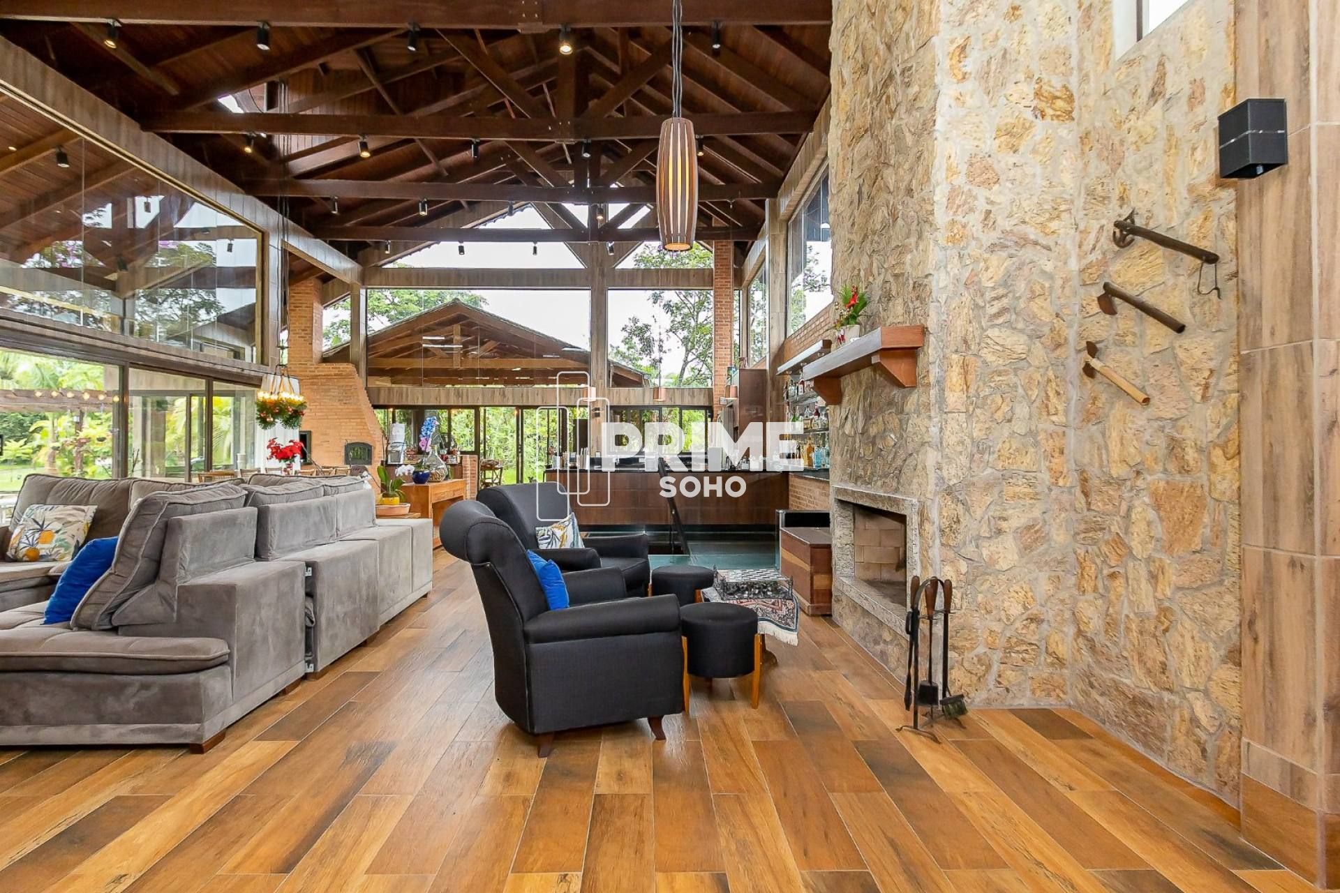 A casa principal impressiona pela amplitude e integração dos ambientes, oferecendo aproximadamente 700m² de área construída. Os espaços são generosos, bem distribuídos e voltados para o conforto e a convivência , com vista permanente para a natureza ao redor.