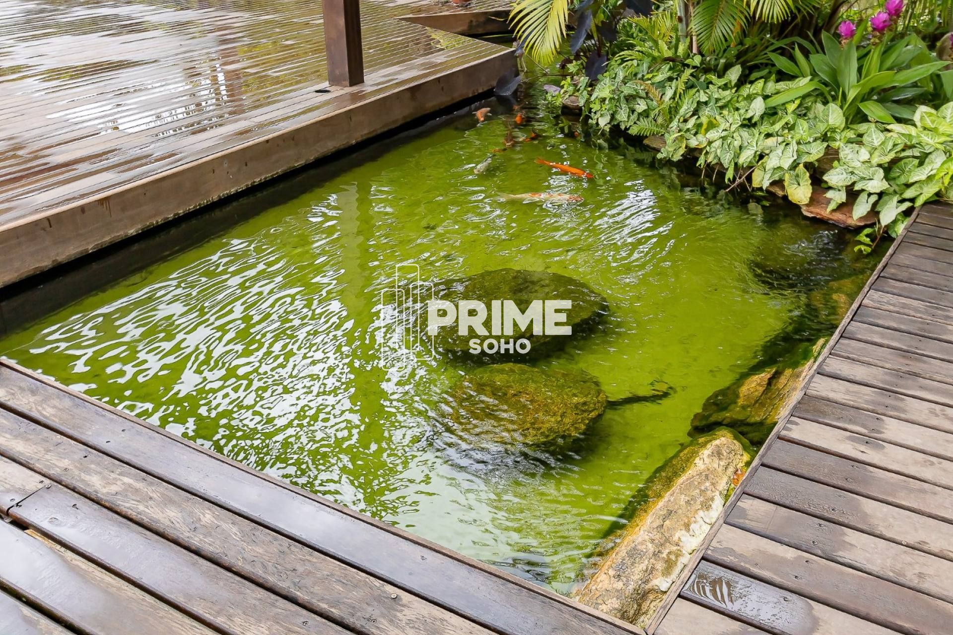 Lago arquitetado com carpas ornamentais