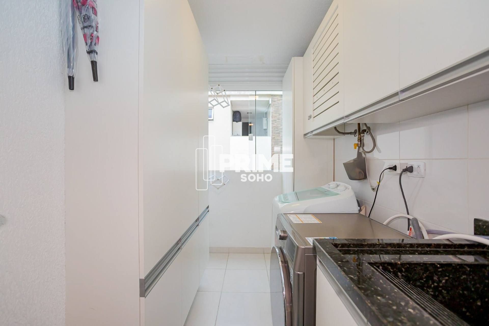 - Área de serviço com armários e aquecedor a gás